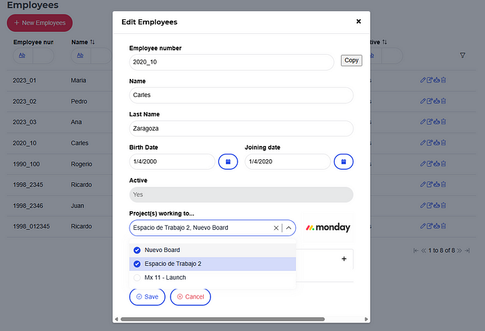 Our Mendix app manages employee data, and we would like to connect our employees to our Monday.com instance (project, board, task detail) to use these information for billing, holidays, and other Human Resources tasks.