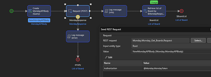The final step is to build a microflow to set up the query and call the Monday.com API using your previous POST request using the Mendix Action — and you’re done!