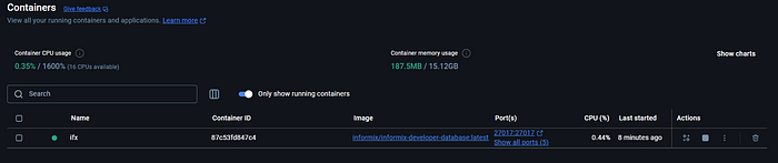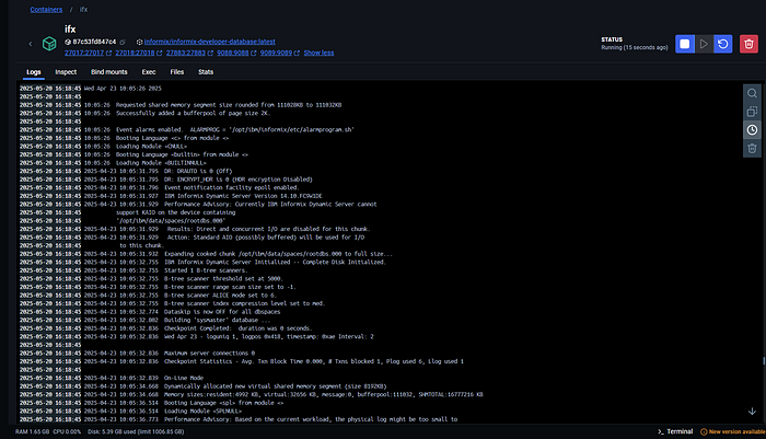 This will expose Informix ports and set a password for the informix user. You can later connect via tools like DBeaver, RazorSQL, or dbaccess from within the container. Example using DBeaver, chech the connection string and check master user/password from the informix running log.