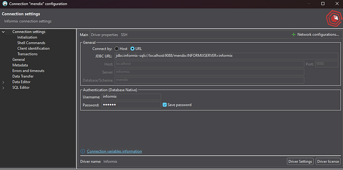 jdbc:informix-sqli://localhost:9088/mendix:INFORMIXSERVER=informix